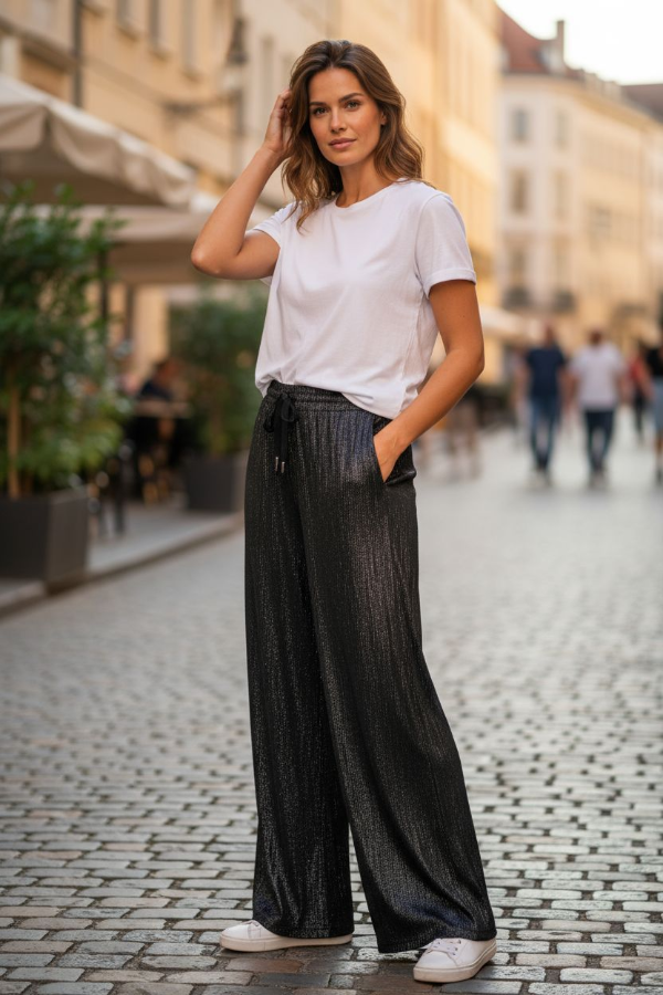 Palazo con bolsillo. Confeccionado en morley con foil.