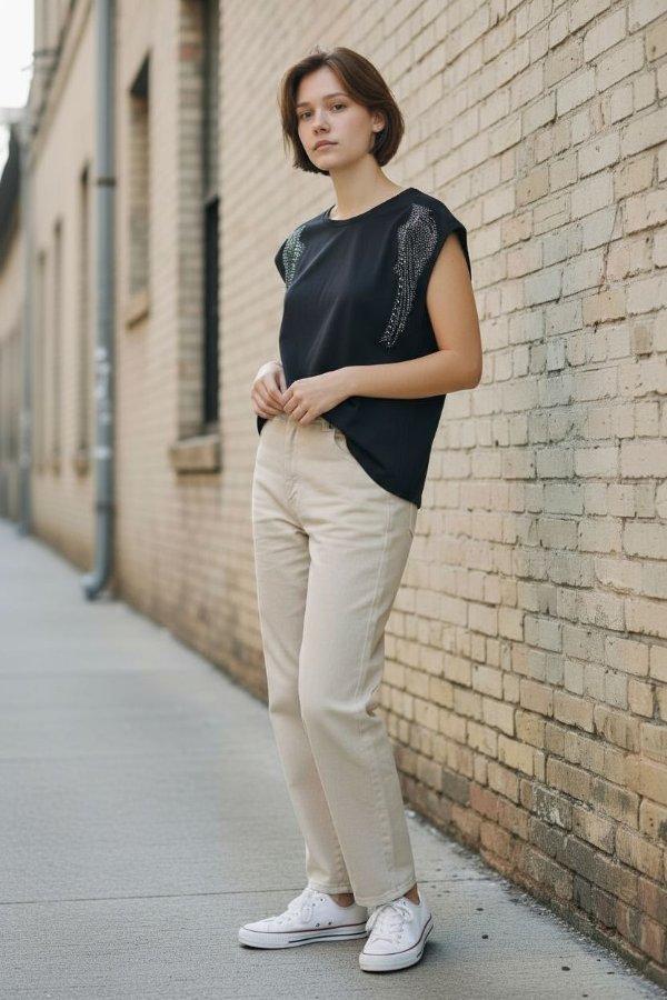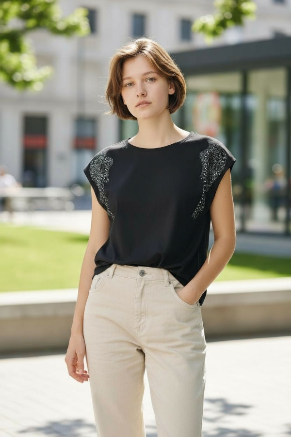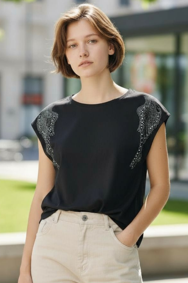 Remera con strass confeccionada en algodón con Lycra.
